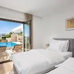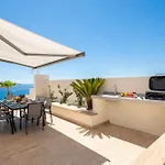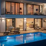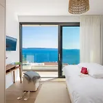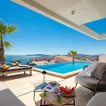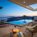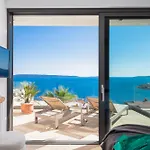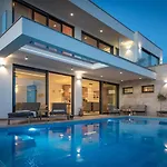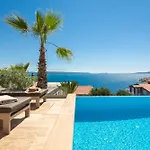 Die 4-Zimmer- Villa Maxime With Heated Pool Trogir verfügt über eine Terrasse mit Aussicht aufs Meer sowie einen privaten Swimmingpool.